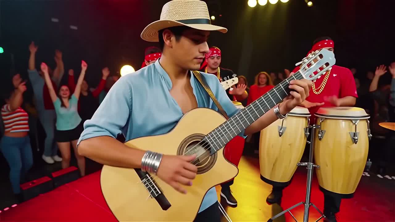 Guitar arpeggios, Congas, bongo, Reggaeton