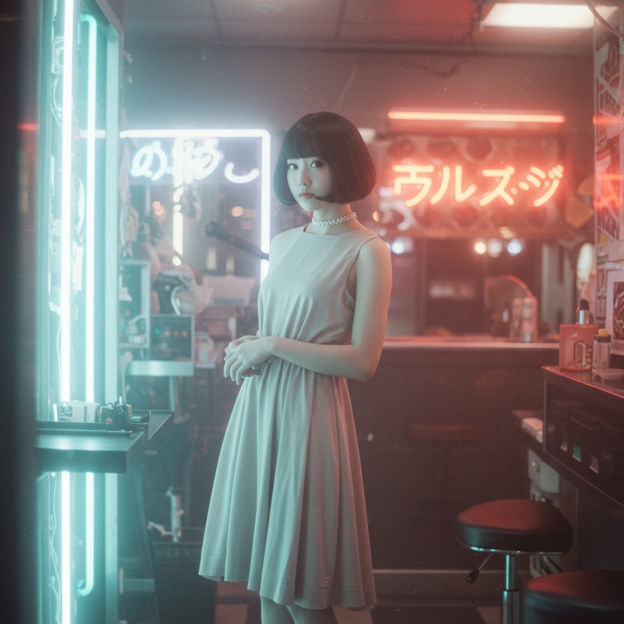 A 1980s Japanese pop song with warm analog synths, minimal piano melodies, jazzy chord progressions, kawaii future bass vibes, Sweet soft female vocals, A blend of avant-pop and electronic elements, with playful rhythm changes, gentle percussion, and emotional yet sophisticated atmosphere, The song feels like an artful conversation between acoustic and electronic sounds, nostalgic yet futuristic, Electro swing music blankets the entire area like silk snow, mellow, smooth