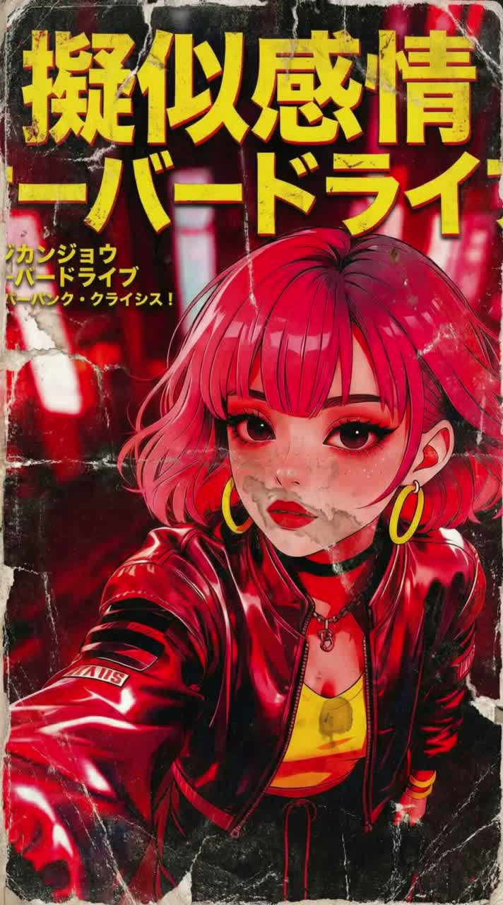 A dark J-POP track with glitchy synth textures and sparse kick-snare patterns, set against wide, atmospheric pads, Whispered female Japanese vocals thread through tense layers, with bursts of distorted, anguished lines, Subtle samples, warped effects, and panoramic Dolby Atmos mixing create a vivid cyberpunk soundscape