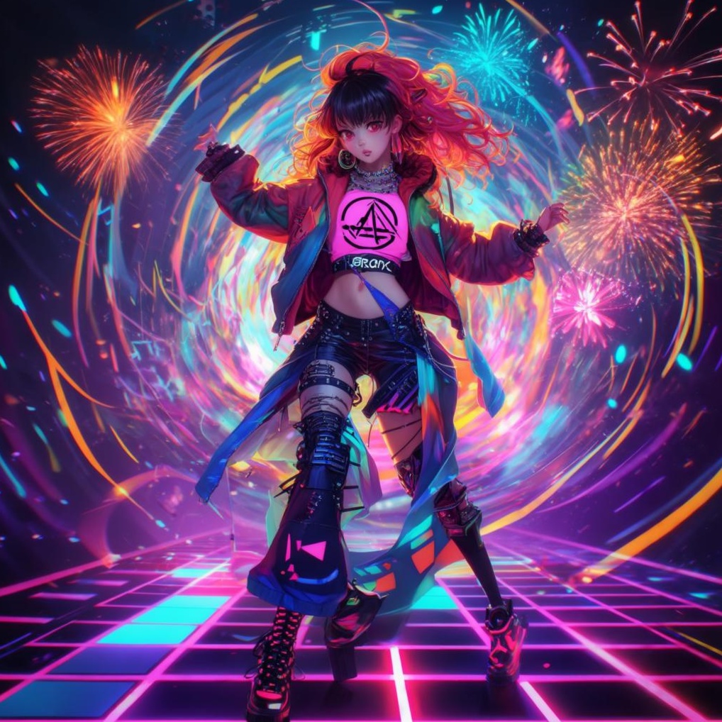 Style: 80s disco, synthpop, funky bassline, glittery guitars, anthemic chorus, female vocals, nostalgic, dancefloor energy