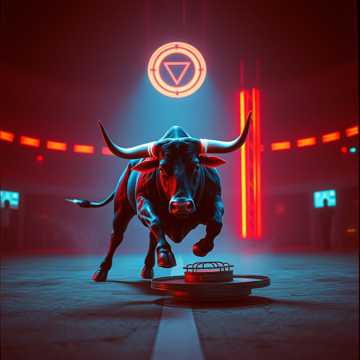 A hyper-EDM, industrial techno base with relentless kick and razor-sharp hi-hats drives the track, layered with glitchstep drops, distorted synths, and mechanical percussion, Cyberpunk bass throbs beneath, punctuated by flamenco guitar flourishes and syncopated handclaps, Aggressive male vocals cut through with raw power, framed by dramatic rhythmic shifts echoing a futuristic bullfight
