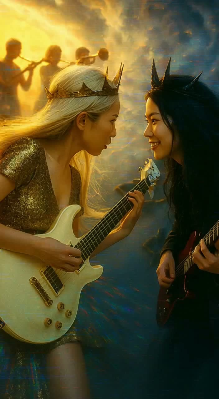 Multi-National Musical Force [Instrumentation: French Pop Guitarist, Afro Beat Drummer, Indian Groove Bassist, American Rock Guitarist, Japanese Traditional Keyboardist], Epic cinematic indie-pop with baroque pop and alt-rock vibes, around 140 BPM, Grand strings, church-bell accents, bold timpani, bright ringing guitars, pulsing piano and deep rolling bass create a royal, parade-like energy, Military Anthem, Deep Ethnic Hip Hop, Psychedelic Metal Core, Catchy Melody, Create an epic, world-class track blending traditional Japanese Gagaku instruments, Many Key Modulations, Vocal Unison, Choir, Amazing Male Main Vocal, Glitch, Mellow Melodious Dance Anthem, Cyber Techno Rock Opera Ballad, Catchy Melody, Math Rock, Whispered and breathy spoken-singing style main Vocal, Every section modulates to a new key — constant upward or sideways key changes, with audible breaths and sighs