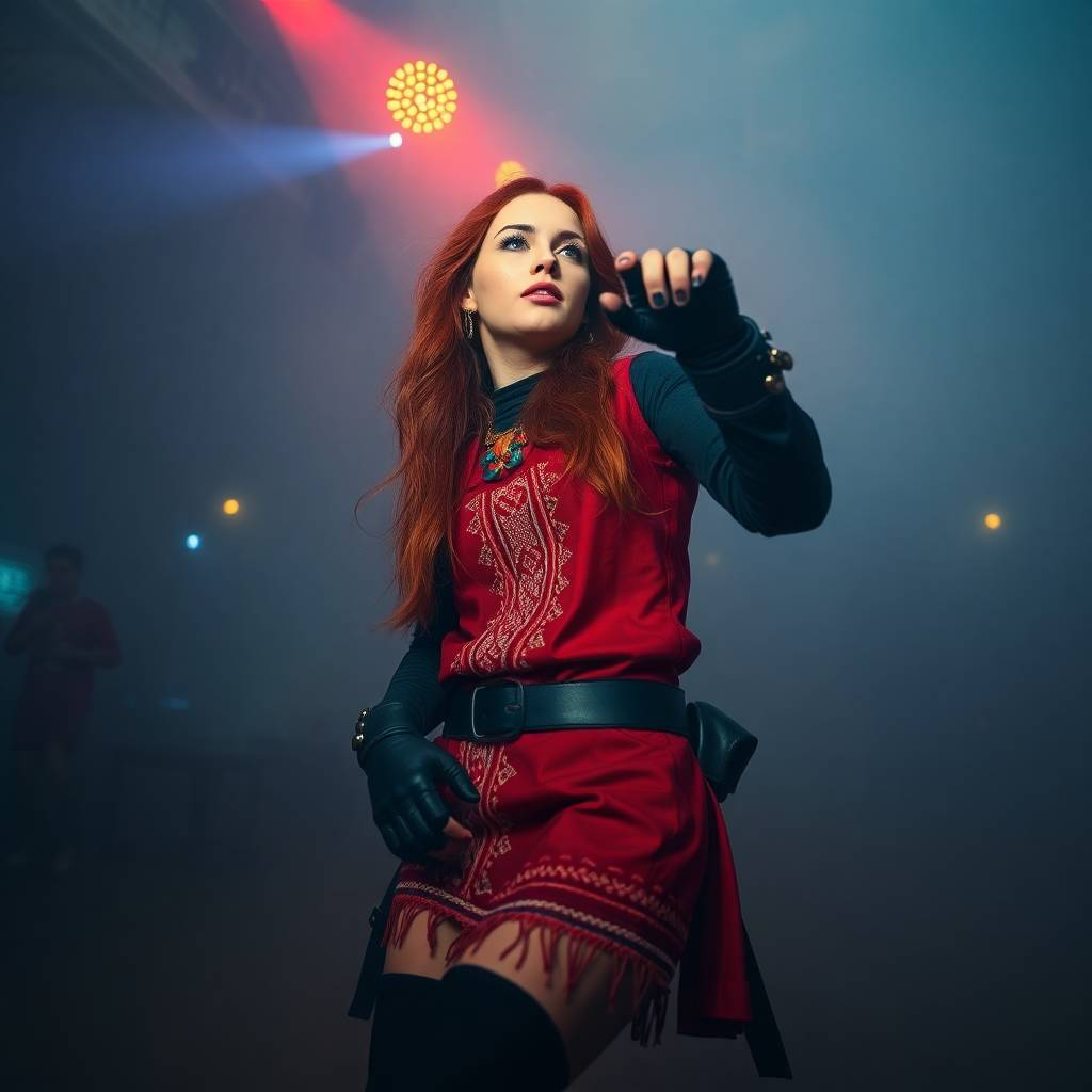 Create a hypnotic, danceable fusion of modern electronic afrobeat and dark ethno-minimalism with ritual energy and subtle mysticism, Use deep, dry percussion with tribal swing, hand drums, and pulsing bass, Add echoing clean guitars, ambient drones, and vocal harmonies that feel ancient and enchanted, Lead female vocal should be soft, confident, and slightly sarcastic — like a whispering spell, mixing charm and irony, The music should build a trance-like groove, powerful but restrained, blending spiritual intensity with modern attitude, Atmosphere: mystical, earthy, cinematic — as if casting a spell through rhythm and dance, where vengeance turns into freedom and laughter