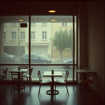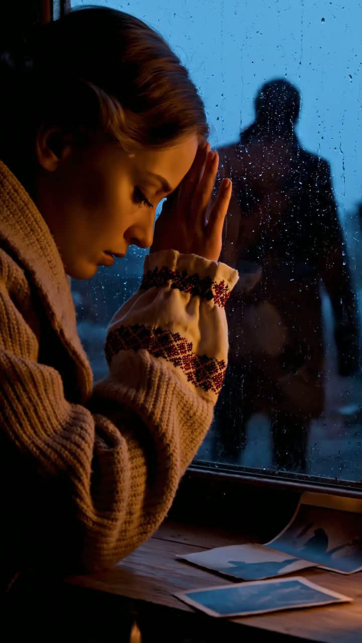 A poetic, nostalgic Parisian scene — a woman alone in a dim café in old Montmartre, soft light, rain on the window, an accordionist playing in the distance, Mood: tender, melancholic, vintage 1940s France
