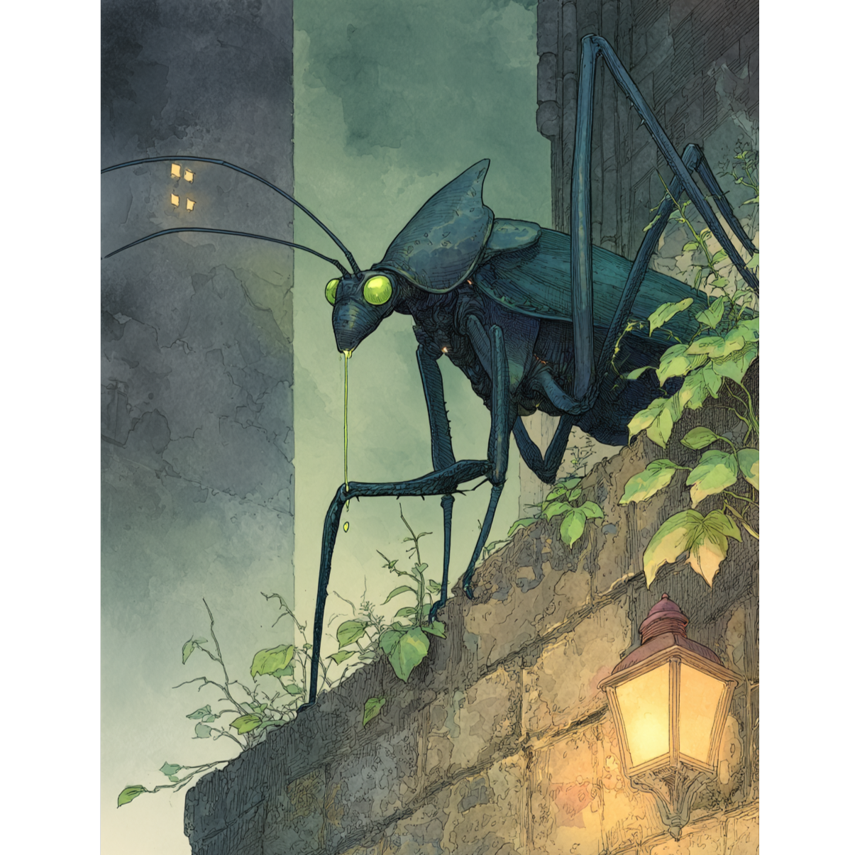 Create a looping ambient track for a dark stone chamber filled with strange mirrors and the slow hatching of a large insect egg, Use low, echoing drones from cello or bass, layered with intermittent reversed metallic chimes, Include the sound of a faint, wet heartbeat or pulsing organic texture in the background, Add soft breathing and light scratching or clicking, like insect limbs brushing against stone, Occasionally play a short shimmer of bowed glass or detuned temple bell, no melody, just dissonant atmosphere, Introduce low-frequency rumbles and distant groaning stone to suggest pressure or movement underground, Use subtle green-filtered lighting mood in the sound—cool, still, and humid, Avoid rhythm or music structure, No percussion, no melody, Focus on tension and discomfort, Sound should suggest something is about to break through, All effects should be quiet, layered, and fade in and out gradually, Target loop length: 4–5 minutes, seamless