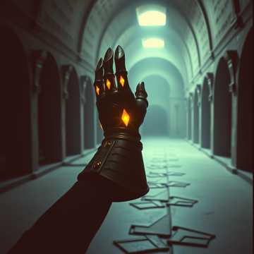 Create a looping ambient track for a quiet dungeon room containing empty weapon racks, a locked door, and a hidden magical gauntlet visible only in another dimension, Use cold, metallic textures—like slow echoes of steel being tapped or rubbed, Add distant, ambient ringing, like a blade resonating across time, Layer in low drones with subtle dissonance to suggest the presence of something hidden or out of phase, Include light glassy shimmers or reversed chime effects to represent the mirror’s influence, No rhythm, melody, or percussion, The sound should be sterile, hollow, and tense—like a room holding its breath, Avoid horror, but create a sense of layered stillness and ancient vigilance, No vocals, Target loop length: 3–4 minutes, seamless