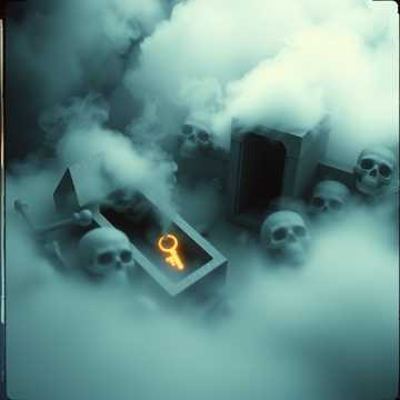 Create a looping ambient track for a cold stone tomb filled with open coffins, scattered bones, and a floating magical key, Use deep, sustained drones from low cello or organ pads, Add sparse creaking sounds, like old wood or stone lids shifting, Include subtle whisper-like textures and quiet rattling of bone or dry fabric to suggest lingering undead presence, Layer in distant, barely audible chanting or tonal murmurs with heavy reverb—no words, only texture, Occasionally include light magical hums or pulsing tones to hint at the suspended Phase Key, Avoid rhythm or melody, No percussion or vocals, The sound should be solemn, heavy, and ancient—evoking death, stillness, and waiting, Do not add horror elements; keep it eerie and reverent, Target loop length: 3–4 minutes, seamless