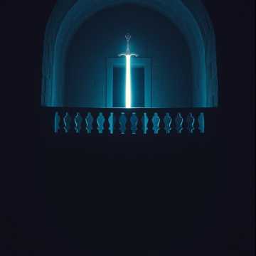 Create a looping ambient track for a stone balcony high above a dark crypt, lit by a softly glowing magical sword, Use sparse ambient pads—light, airy, and cool—like gentle wind through an open stone space, Add soft reverb-heavy shimmering tones from glass, crystal, or bell-like instruments to suggest magical illumination, Occasionally include faint whispers or soft sighing winds that rise and fall slowly, Layer in distant echoing sounds from below—like muffled moans or bone scraping far down in the crypt, Include a quiet hum or pulse to represent the presence of Lichgate, No rhythm, percussion, or melody, The atmosphere should be somber, distant, and touched by magic and loss—still and quiet, but not peaceful, No vocals or sudden effects, Target loop length: 3–4 minutes, seamless