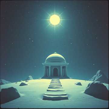 An ambient soundtrack evoking the eerie wonder and cosmic dread of a ruined temple caught between realities, Sparse detuned piano notes echo through a vast stone space, mingled with the shimmering tones of bowed glass and distant temple bells, Low, droning cellos build tension beneath the surface, while granular pads shift like ripples in a mirror, Occasional reversed whispers and soft insectoid skittering add a sense of discomfort, Subtle mechanical hums and the wet breathing of unseen things in the walls suggest hidden life, The music should feel melancholic and otherworldly, blending beauty with dissonance, Imagine an ancient, forgotten place where mirrors shimmer with forbidden knowledge, and the veil between worlds has thinned, Use slow pacing, evolving textures, and reverb-heavy instrumentation, No percussion or rhythm, just haunting atmosphere that loops seamlessly, Inspired by eldritch horror, decayed science fantasy, and the lonely echo of distant stars