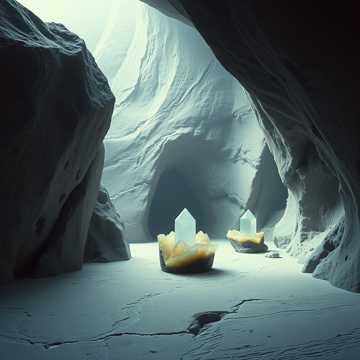 Create a looping ambient track for a quiet dungeon chamber with gray stone walls, embedded agate blocks, and a headless flesh golem standing near a stone table, Use soft, neutral drones—cold and still—with occasional subtle harmonic tones like vibrating crystal or muted chimes, Include quiet, shifting stone or fabric sounds to suggest stillness just on the edge of motion, Add faint magical hums or static pulses to represent the agate cubes and arcane storage, Occasionally use very soft rustling or breath-like textures, as if the golem is reacting to presence, No melody, rhythm, or percussion, Avoid horror or drama—keep the sound sterile, suspended, and clinical, like a magical storage vault forgotten by time, No vocals, Target loop length: 3–4 minutes, seamless