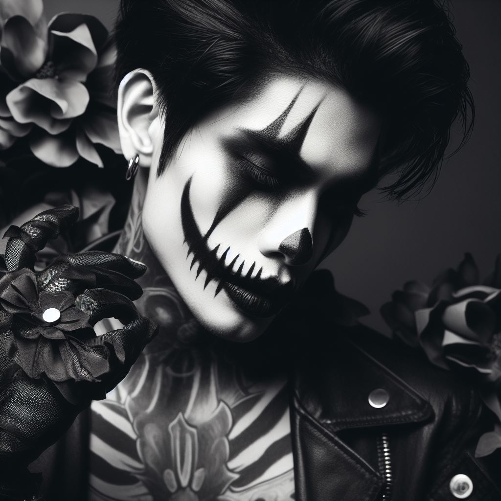 Carnival music, anthemic emo rock, dark, glitchcore, catchy, ominous piano, unsettling distortion, music box, dramatic, hard bass, dark lullaby, sweet, quiet no vocals