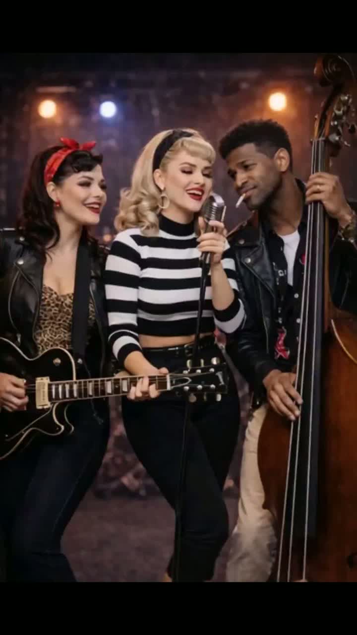 Flirty, fun, confident, stage chemistry, Rockabilly queens energy, Crowd sing-along ready