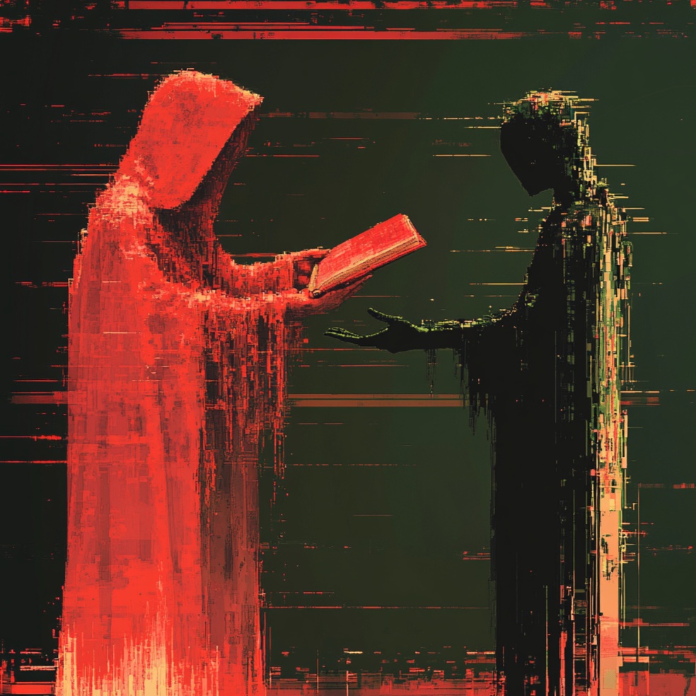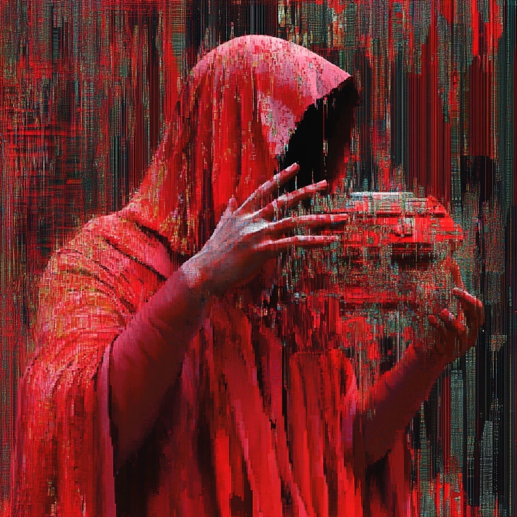 An experimental glitch-electronic track layered with fractured breakbeats, digital distortion, and bursts of static noise, Robotic vocoder vocals narrate surreal, cryptic ideas over metallic synth pulses and broken rhythmic loops, Abrupt transitions and harmonic dissonance create a warped, reality-bending soundscape that oscillates between haunting stillness and chaotic digital interference