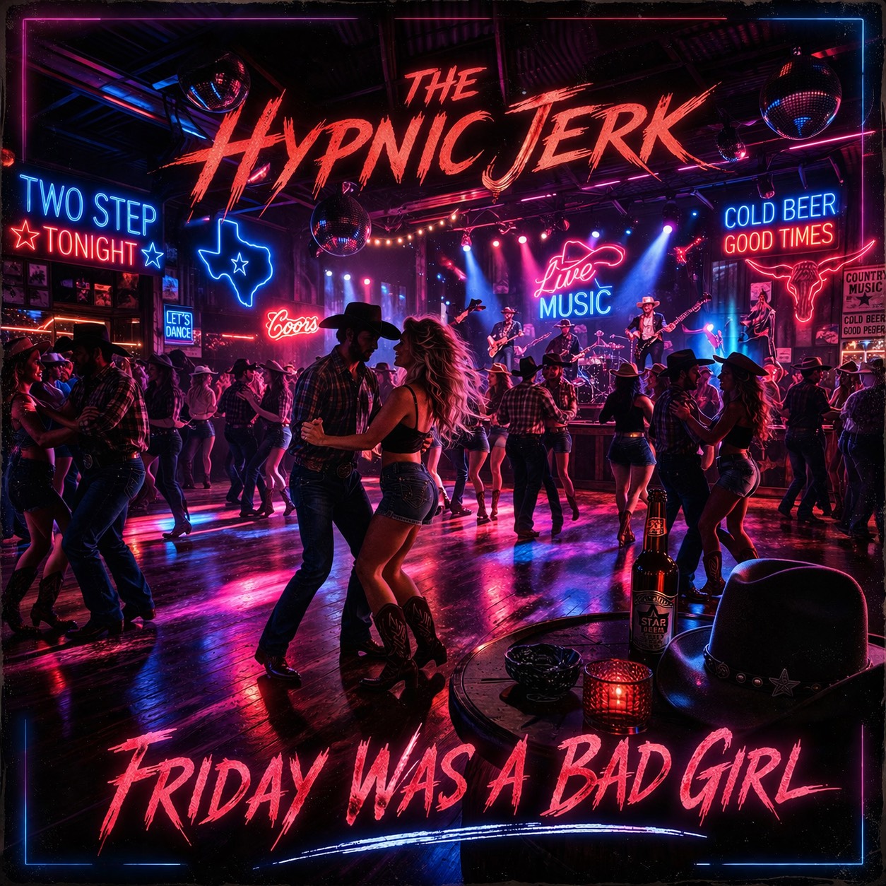 high-energy bro country anthem, punchy arena-ready drums, bright electric guitars, fiddle, driving, big hooky choruses, party-ready modern country production, warm yet swaggering male vocal, layered gang-style backing vocals, driving bass, subtle steel and banjo textures, glossy radio-style mix, steady mid-tempo groove designed for trucks, tailgates, and summer nights, 90s, bounce drop