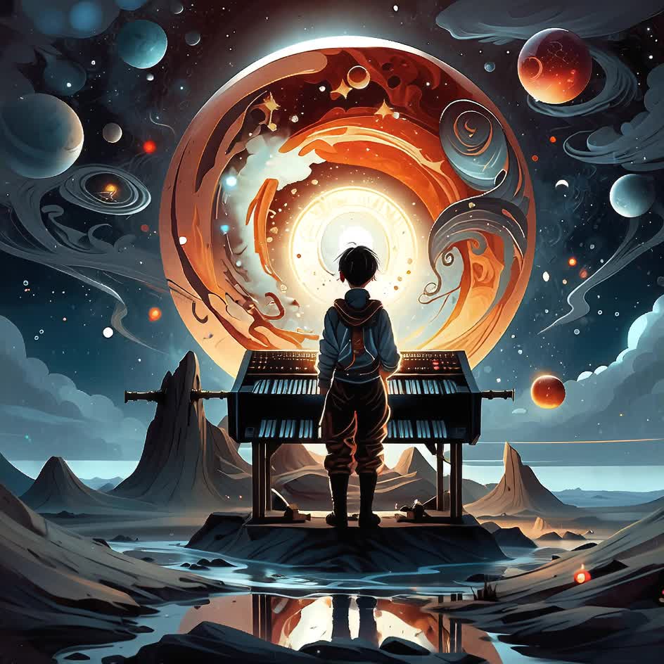 Opening with lo-fi grain, shoegaze, delicate Rhodes, warm subby bass, gentle synths cascading, and detailed glitch tweaks, soaring drums rise among lush, evolving pads, IDM glitches, psybient waves, turntablism, swirling dub-techno/dub-rock textures, and cosmic echoes, cocky, experimental, slow deep pulses, subtle grit bluesy distant, celtic-harp, hurdy-gurdy, drawn out whistling reverted processed
