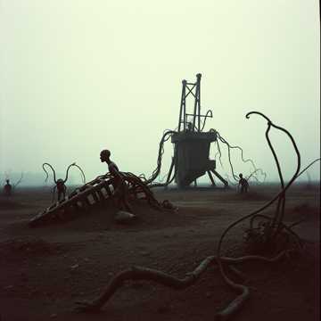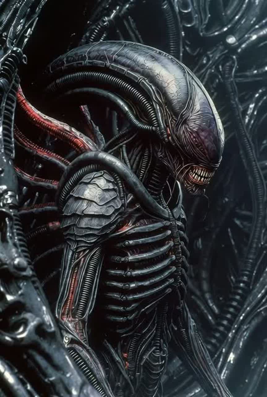 A cold, industrial sci-fi atmosphere built from metallic echoes, low-frequency drones, and pulsing synthetic textures, The sound is spacious yet suffocating, blending analog synths with distant mechanical thrum—like the Nostromo’s dying breath, Guitars, when they appear, are drenched in reverb and delay, more like machinery than instruments, creating tension instead of melody, Percussion is slow, deliberate, hydraulic, echoing through cavernous corridors, Vocals are dark, restrained, almost whispered at times, then rising into distorted, panicked crescendos as the terror grows, The overall tone is claustrophobic, bleak, and cosmic: a fusion of gothic ambience, industrial pressure, and deep-space dread, Every element feels isolated, suspended in the void, building the sense that something is hunting just beyond the edge of the mix