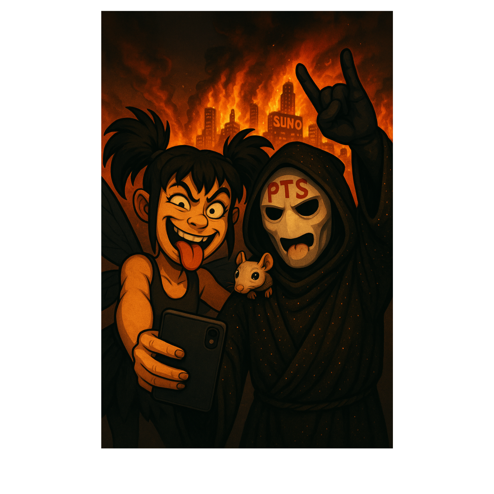 punk nu metal Trap, Horrorcore, Little child singing, nursery rhyme, Little child singing horror powerful, personality switches, raw emotional energy, mental health themes, eerie atmosphere, theatrical delivery, Chaotic but controlled energy, in non-stop hip-hop rhythm with metal guitar, punk a cappella funny sounds