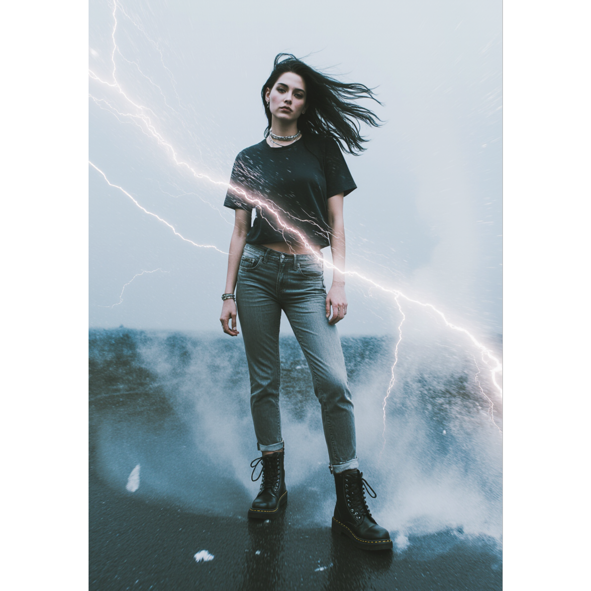 female-fronted nu metalcore with glitchcore textures, emotional and cathartic, heavy guitars with clean and distorted layers, deep bass, double bass drums, digital glitch bursts, reversed fragments, and bit-crushed effects, dynamic build from soft despair to fierce release, raw yet melodic vocals, cinematic metal tension and release