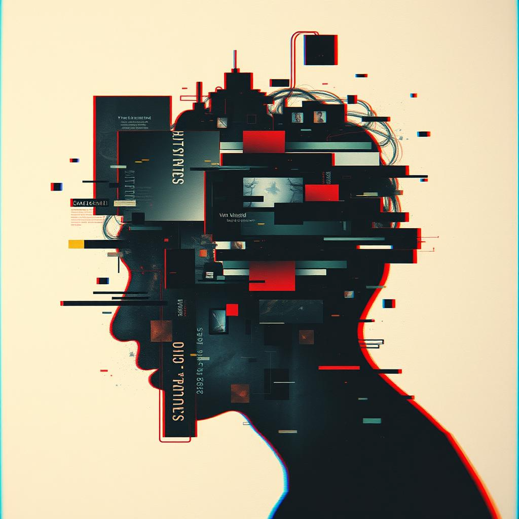 An immersive and obscure Psychedelic Cybergrunge track, The foundation is a powerful, heavy, and distorted drop-tuned guitar riff and a deep, melodic, fuzz-laden bassline, The drums are complex, tribal-infused, and live-sounding, with prominent cymbals and tom work, This raw, organic core is infused with ethereal, swirling synth pads, glitching electronic textures, and subtle, hallucinatory sound effects that evoke a dreamlike state, The lead male vocal is a multi-octave baritone, shifting from a low, hypnotic growl to a soaring, shamanistic wail, delivering poetic, highly obscure lyrics with double meanings