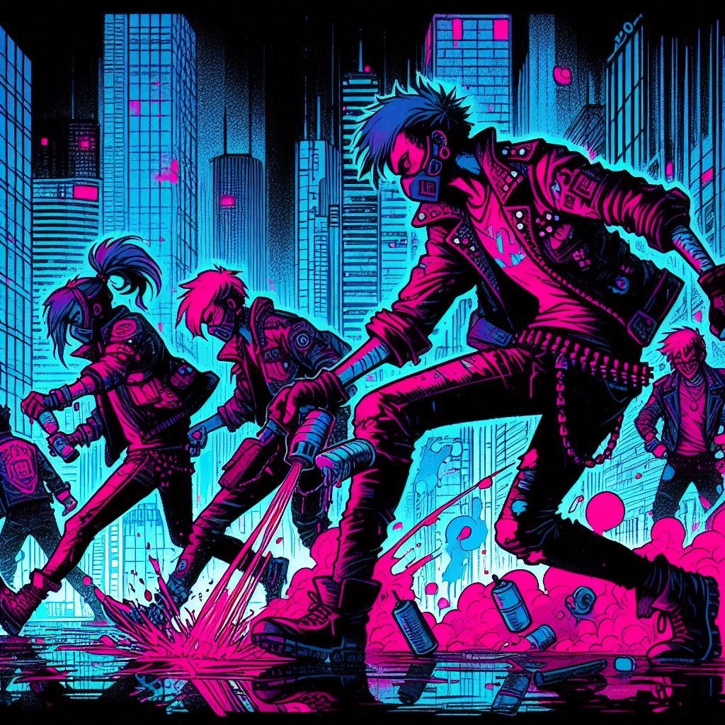 futuristic punk funk, cyberpunk, female vocals, 5/4 time, major chord, up tempo