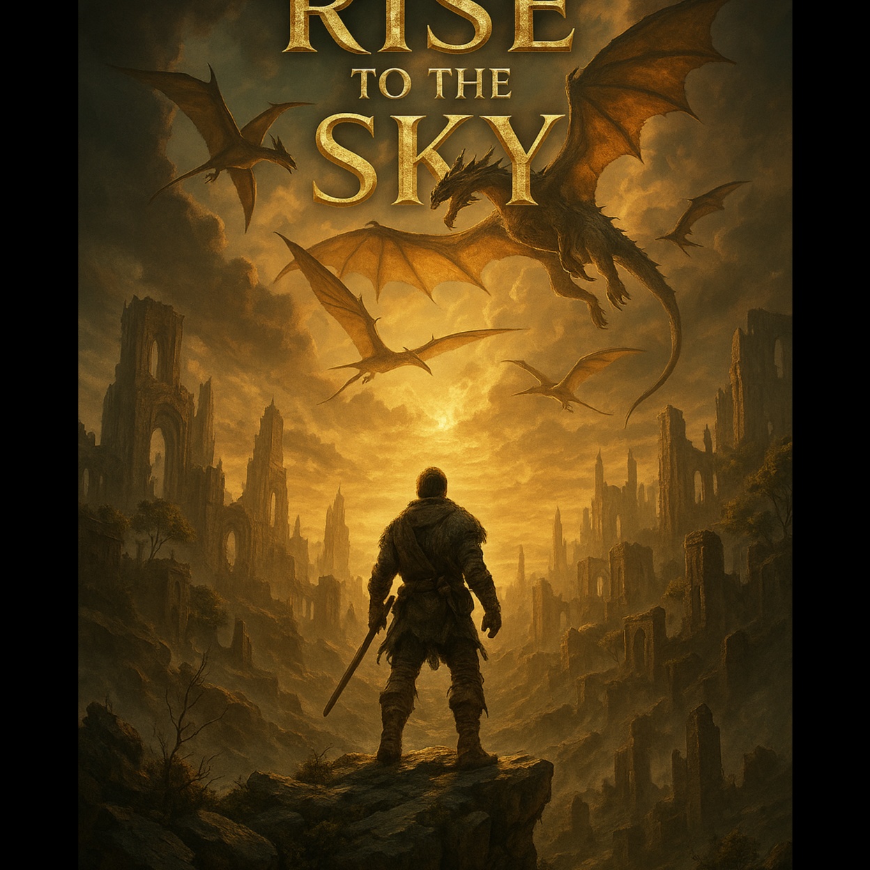 Epic orchestral rock with fantasy metal edge, Emotional string layers, deep percussion, tribal drums, and powerful distorted guitars, Heroic male vocals, post-apocalyptic survival tone, with themes of flight, desolation, and hope
