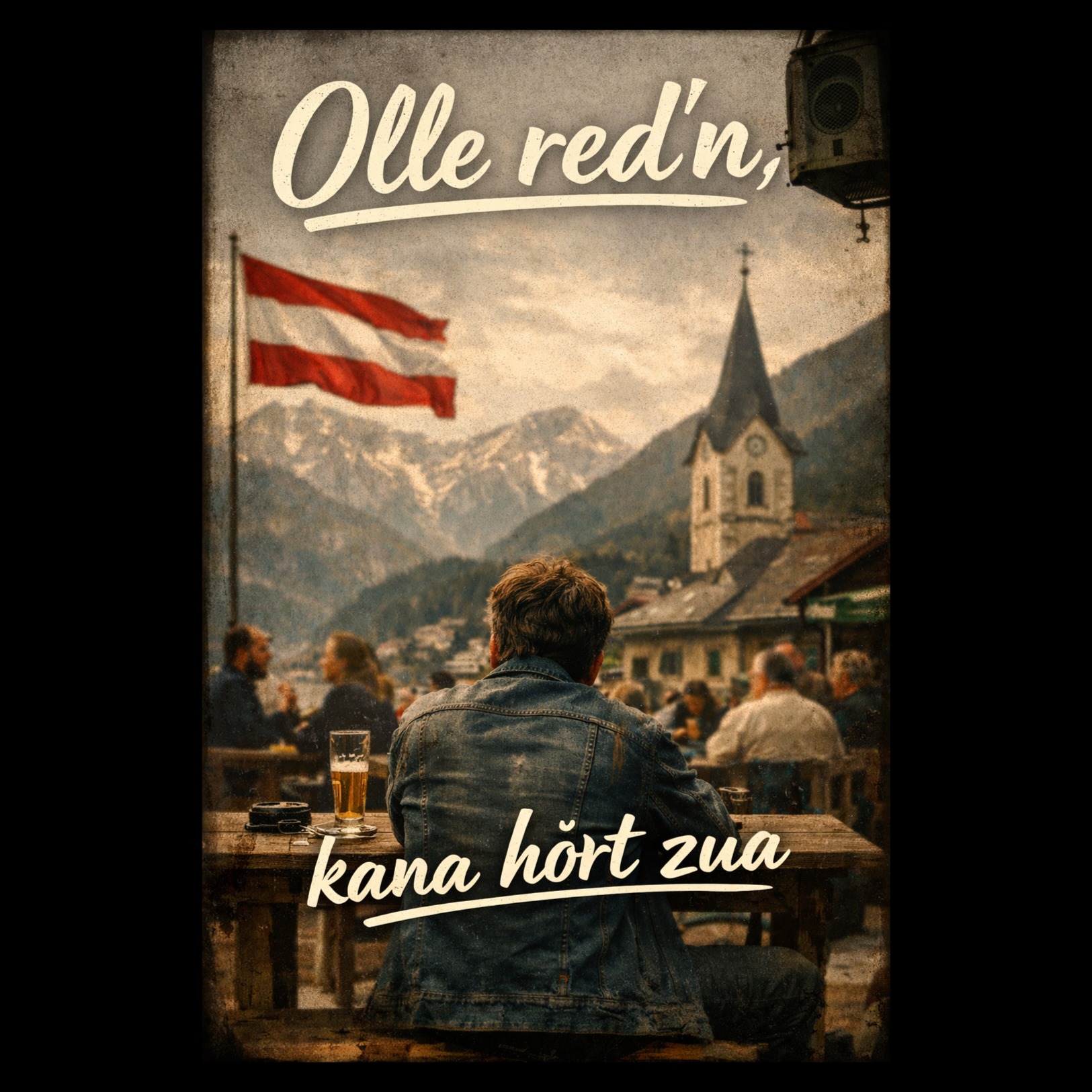 Austropop, indie-pop, 112 BPM, syncopated staccato groove, offbeat snare, chopped guitar stabs, percussive piano riffs, punchy bassline, handclap responses, male lead vocals, call and response refrains, verse stacked harmonies, slapback delay, tight room reverb, breakbeat bridges, abrupt dropouts, restless frustration, anxious momentum