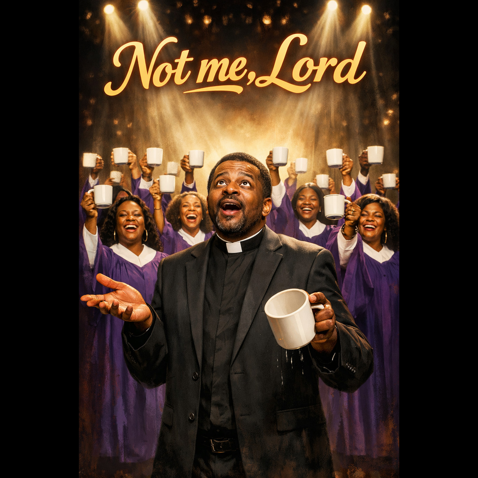 Epic gospel choir, dramatic church organ, cinematic orchestral build, call and response vocals, powerful lead singer (male or female), choir answers in tight harmonies, gradual intensity growth, emotional progression from frustration to euphoric joy, mix of humor and spiritual energy, strong dynamics, big reverbs, hand claps, stomps, rising choir layers, triumphant final chorus, slightly theatrical, expressive phrasing, spoken interjections allowed