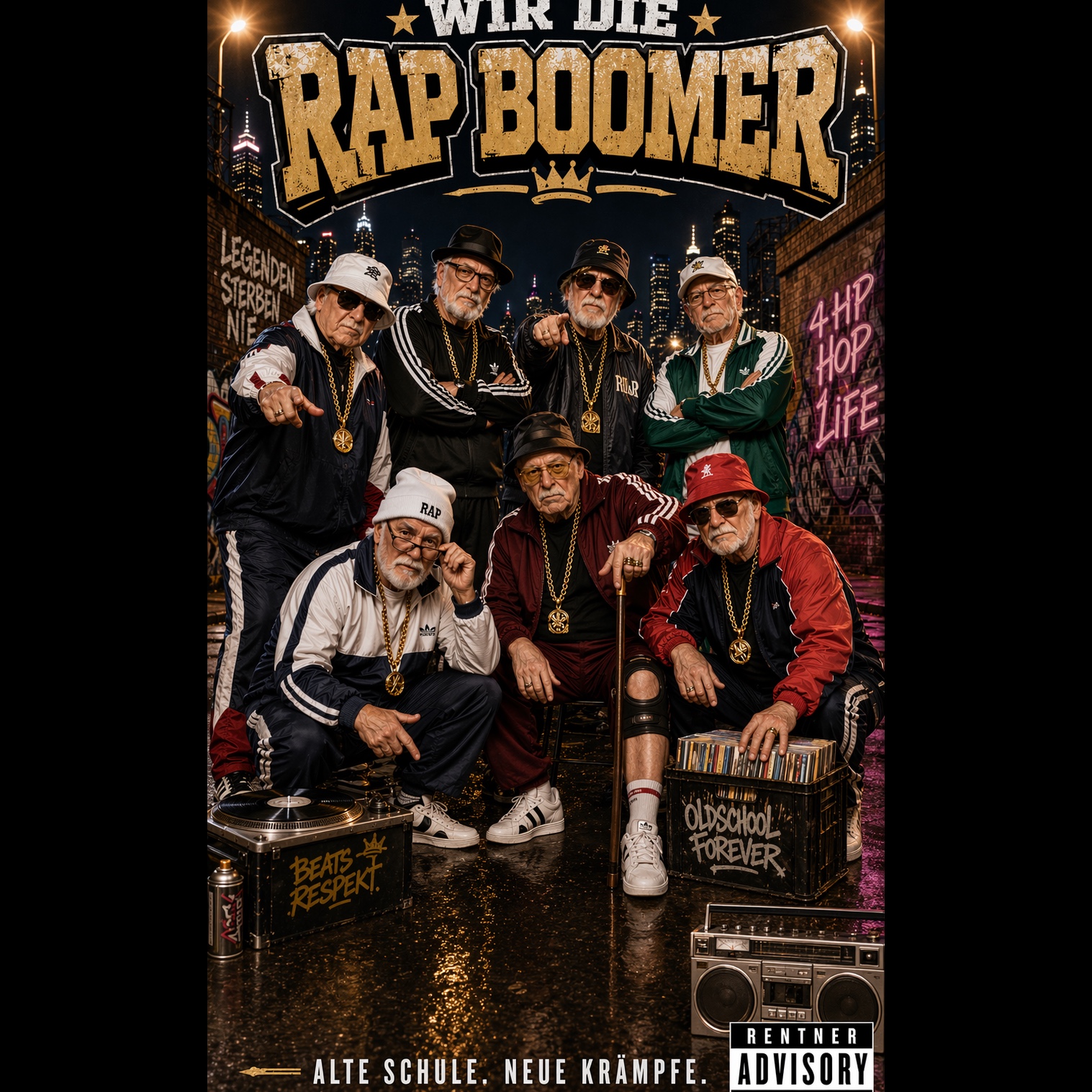 80s/90s pop/rock fused with cinematic gospel and gritty German gangsta rap: driving pop drums, distorted rhythm guitars & Synths, cathedral organ solo, massive gospel choir, deep pulsing 808 bass, male rap-vocoder verse, female gospel chorus, huge reverb, tempo shifts, stadium-sized dynamics, polished high-production mix, song length between 4:30 - 5:00 minutes