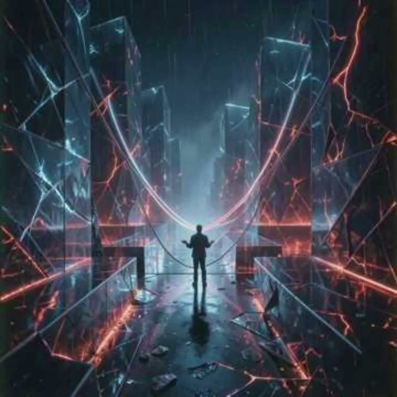 A high-energy synth-pop / future bass fusion track at 128–130 BPM in G minor, bright but razor-edged, Prominent syncopated saw/Reese bassline with subtle distortion/saturation and tight sidechain pumping, Shimmering arpeggiated synths, glassy plucks, and staccato lead stabs with occasional glitch flickers, Drums: crisp electronic kit with heavy four-on-the-floor kick, snappy backbeat snare/clap, rapid hi-hats, short rolls, and aggressive fills; add light industrial percussion layers (metal ticks, gated noise) for bite, Vocal: processed male tenor with heavy pitch correction, stacked harmonies, vocal chops and rhythmic phrasing; occasional whispered doubles, Arrangement: tense verses → escalating pre-chorus → high-intensity drop where melody becomes rhythmic and punchy; include a short breakdown and final bigger drop, Production: tight low-end, transient shaping, stereo widening on tops, lush but controlled reverb, delays that duck with sidechain, occasional tape-stop/glitch transitions