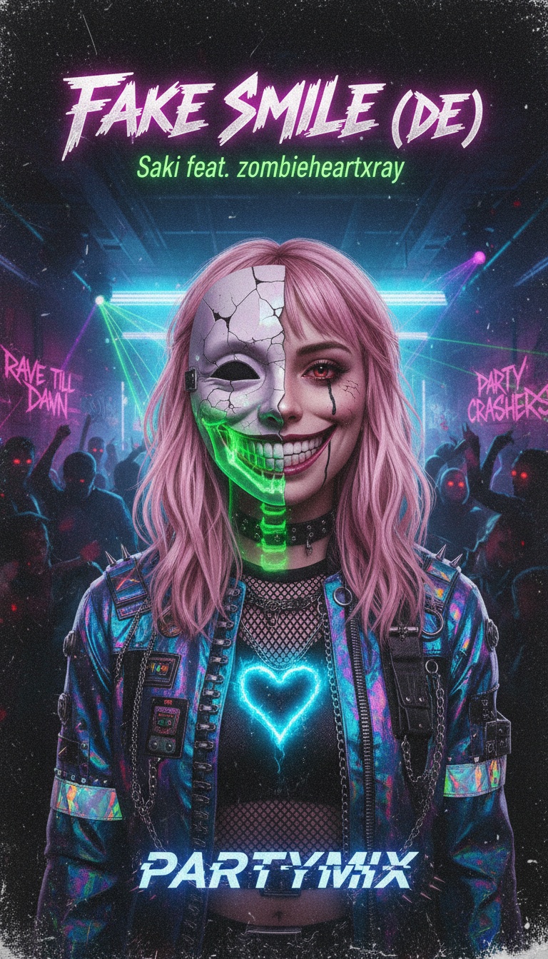 Pounding industrial beats drive the intro, fused with hyper-fast happy hardcore tempos, Verses feature sparkling synths and glitchy samples, supporting bright, layered J-pop vocals, Choruses explode with soaring melodies, syncopated kicks, buzzing bass, and intense, distorted percussion
