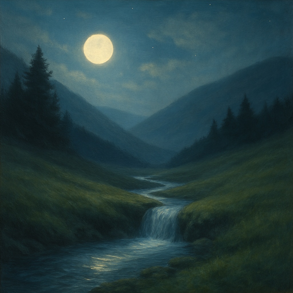 Slow, dreamlike chanson in a minor mode with flutes, harp, and nature ambiance – suitable for nighttime listening and emotional calm