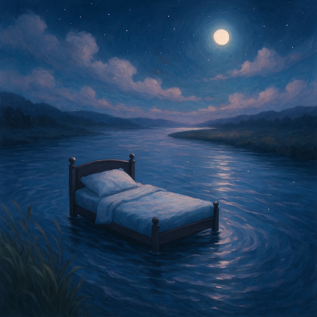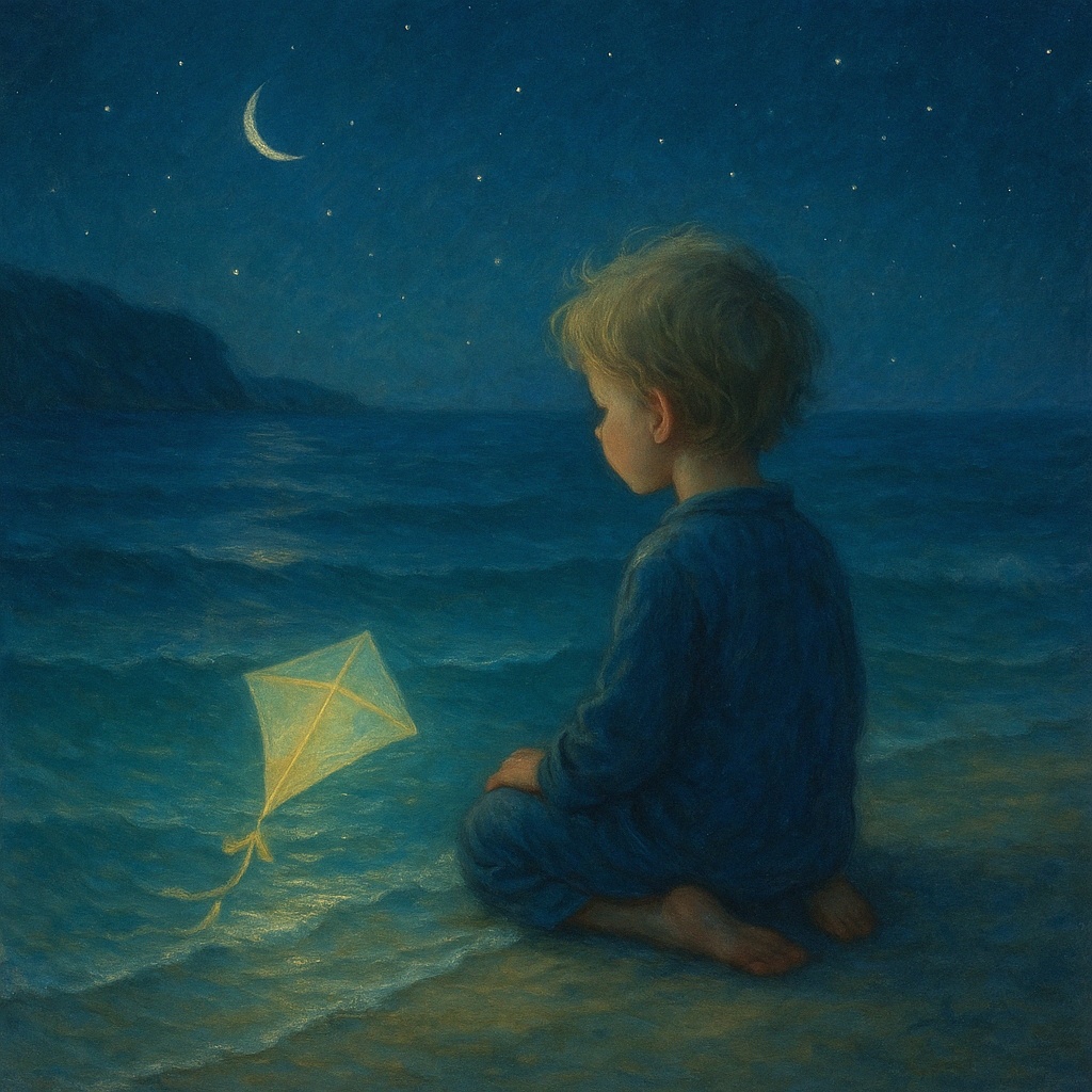 Poetic lullaby sung by a soft female voice, with slow piano, oceanic ambient pads, and gentle flute – evokes a dreamlike atmosphere by a quiet harbor, inspired by childhood dreams