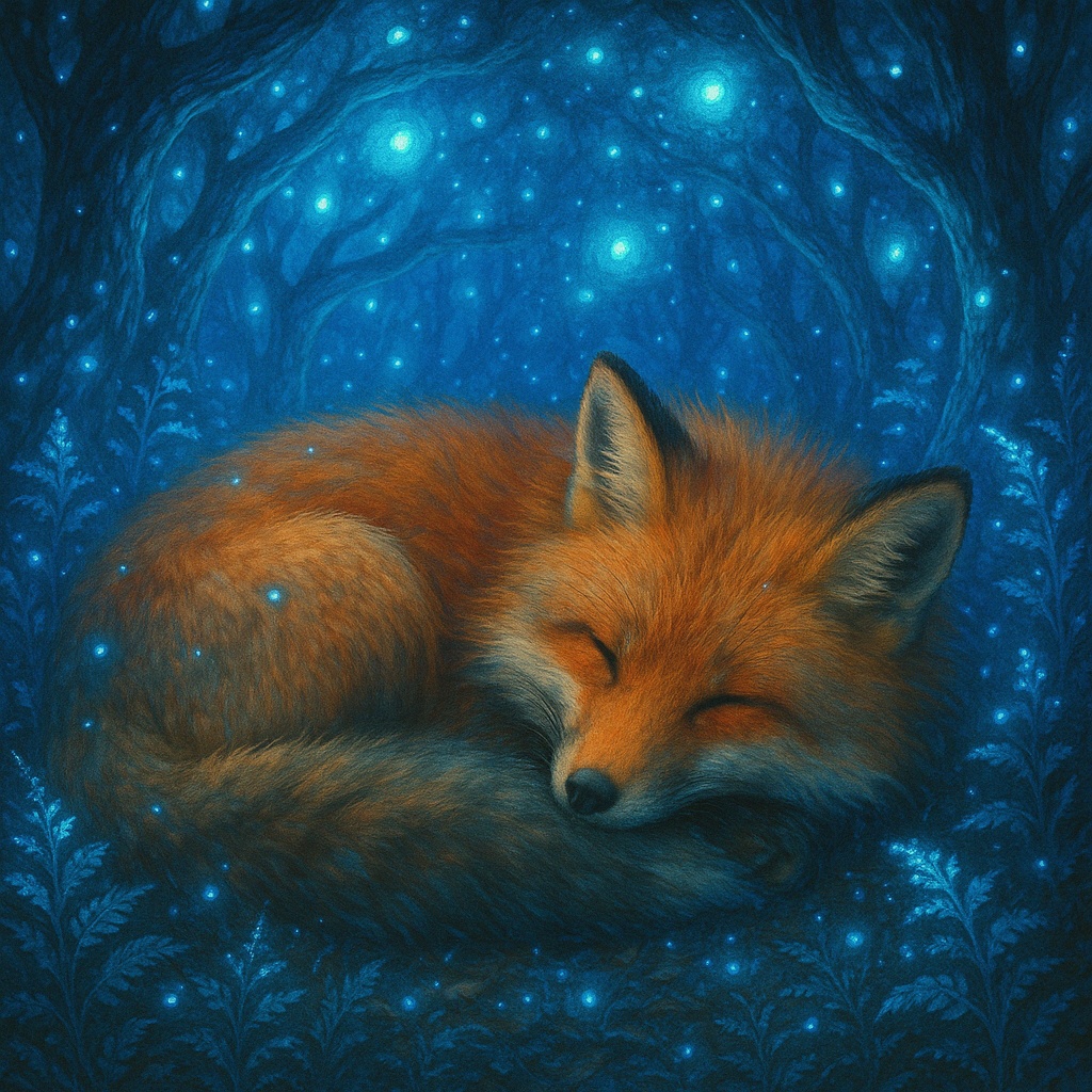 A lullaby unfolds with soft piano and gentle acoustic guitar, joined by featherlight strings and wispy flute; ambient pads and subtle kalimba or brush percussion layer beneath, intertwined with quiet night sounds like wind and distant owl calls, The slow 68 BPM pulse guides each section-intro, verses, soothing chorus, and a delicate bridge-while the warm, intimate French vocal glides atop restful harmonies and tuneful, descending melodies, All textures remain lush, cozy, and sweet, creating a peaceful, nostalgic wrap as the outro gently fades