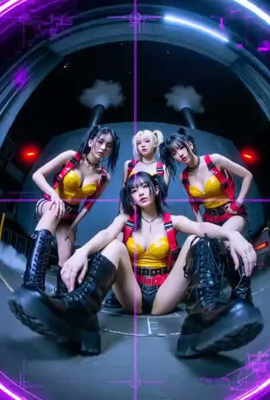 [Voice: K-Pop Girl Group, Auto-tuned Ad-libs, Crisp Rap, Group Harmonies, Airy Vocals]