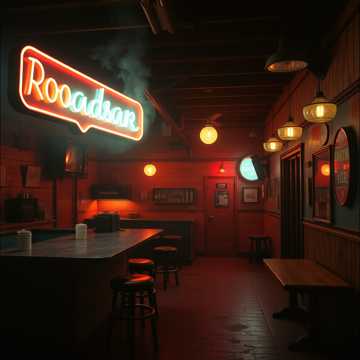 Create an 85 BPM instrumental breakbeat track with a smoky Texas jazz atmosphere, Use dusty, laid-back drums with loose breakbeat swing, brushed snare accents, and slightly behind-the-beat ghost hits, Blend in warm upright bass or a hollow-body electric bass with a slow, bluesy pulse, Add muted blues-guitar licks, soft Wurlitzer or Rhodes chords, and restrained trumpet or sax phrases that drift like smoke in a dim roadside bar, Keep the mood warm, humid, late-night, and gritty—slow-moving air, neon signs buzzing, wood-paneled walls, quiet conversations in the background, The arrangement should stay minimal, cool, and confident with slow-evolving motifs and a touch of Texas blues soul, Instrumental only, Add Afrobeat and Electro Influences