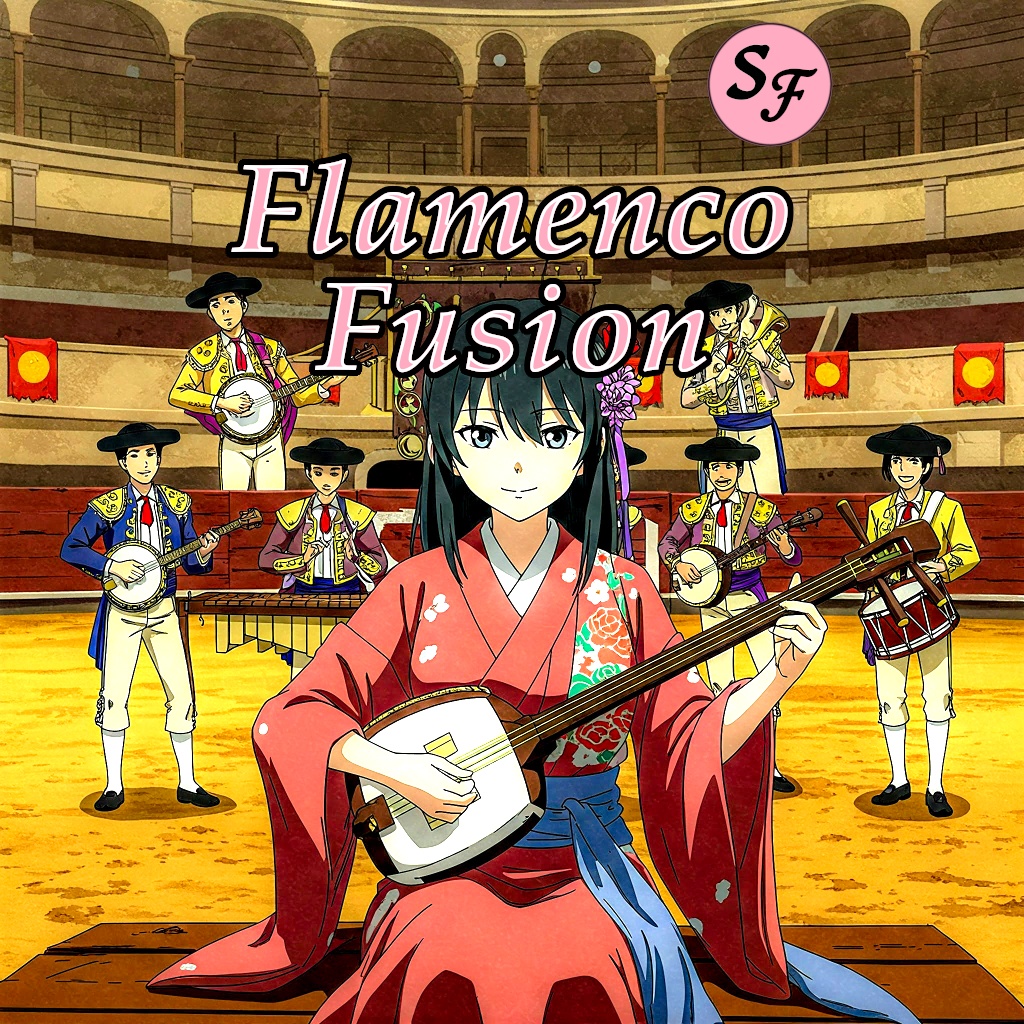 fusion, folk, jazz, classical, shamisen, banjo, marimba, snare, Percussive, flamenco, evolving, infectious, quirky, clean master, Dolby Atmos, ambient, acoustic, Spanish, flamenco