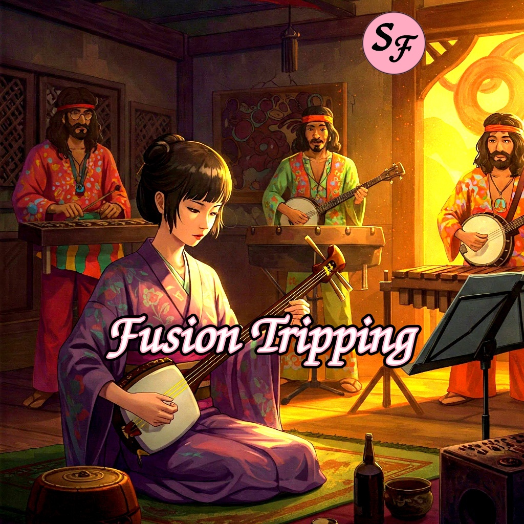 fusion, folk, jazz, instrumental, shamisen, banjo, marimba, snare, Percussive, classical pop, evolving, infectious, quirky, clean master, Dolby Atmos