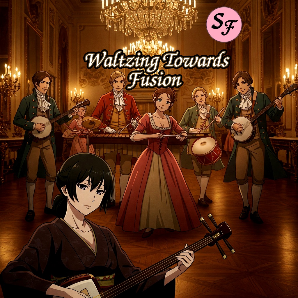 fusion, folk, jazz, classical, shamisen, banjo, marimba, snare, Percussive, Viennese waltz, evolving, infectious, quirky, clean master, Dolby Atmos, Viennese Waltz