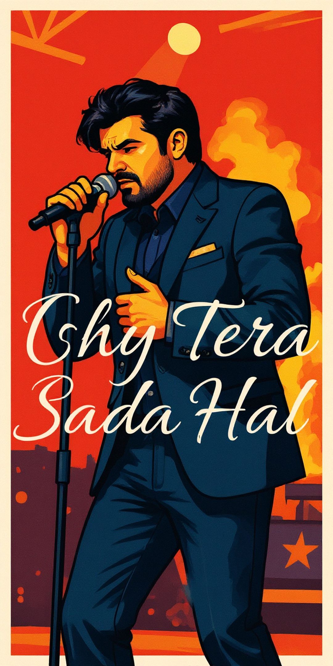 Male vocals, deep emotional tone, cinematic dark rock style, Tempo ~84 BPM, Clean electric guitar intro, ambient pads, Slow build with bass and drums, Explosive chorus with distorted guitars, strings, and heavy reverb, Whisper bridge, then grand finale chorus, Mood: heartbreak, prayer, power, pain, Language: Hindi-Urdu mix, Vocals raw, textured, slightly cracked for emotion