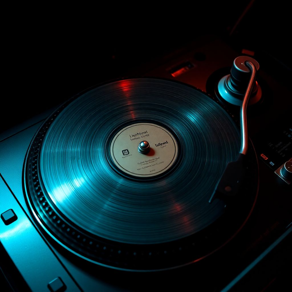 Style: upbeat, soulful turntablism; celebratory block‑party vibe; scratch‑led, Tempo/Key: 104 BPM; major with Mixolydian color; bright triad stabs from pitched chops, Lead: musical scratches—baby, chirp, 2‑click/3‑click flares, boomerang, orbit; chant‑like “oh/hey/na” one‑shots (no lyrics); call‑and‑response motifs; pre‑downbeat pickups; rising‑density fills, Groove: tight swung kick/snare/clap from kit; crisp 16th hats with occasional open splash; ghost notes; strategic one‑bar dropouts to spotlight cuts, Bass/Chords: bouncy mono sub + warm mid layer; stacked horn‑style chops for “fanfare” hits; occasional gospel‑tinted voicings, Hook Motif: two‑bar riff from pitched syllables; catchy, syncopated; answer by denser scratch phrase, Structure: short needle‑drop intro; main groove + sparse cuts; first hook; filtered breakdown (LPF + vinyl stop); tension build (reverse‑chop riser, snare rolls); final hook with densest scratches; stinger, FX: light vinyl crackle, micro‑reverses