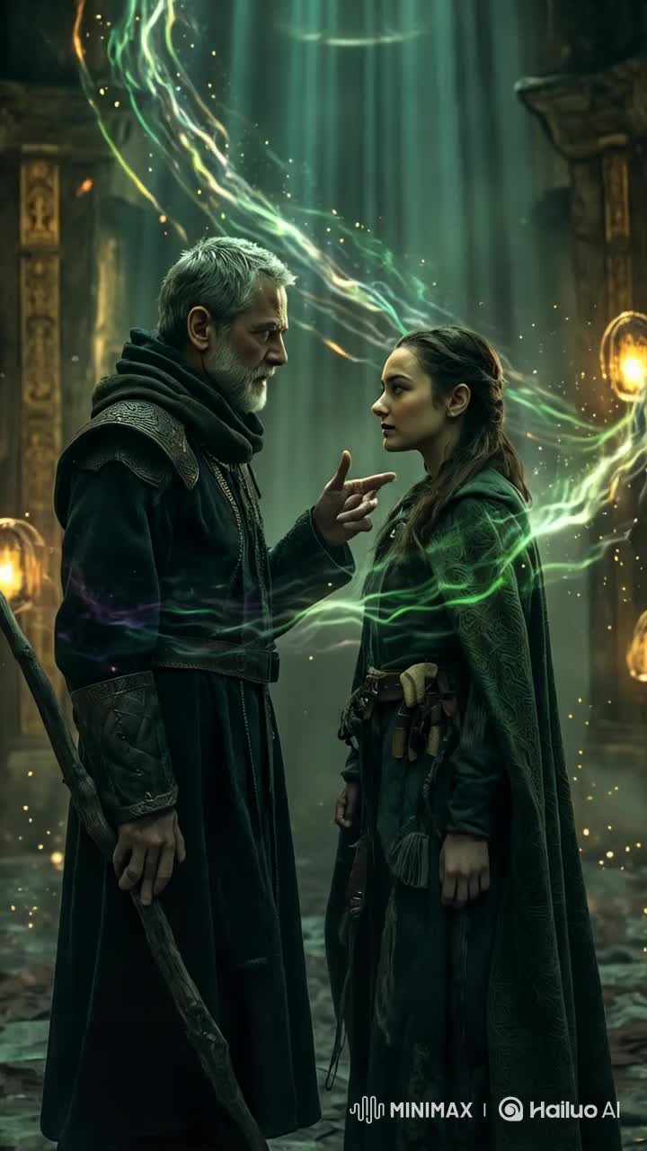 Celtic-inspired intro with calm, atmospheric tones that gradually build into complex progressive metal in 7/8 time, The song begins with a spoken-word narrative, setting the journeyâs tone, The structure evolves through multiple sections, blending Black Metal, Melodic Black Metal, Power Metal, and Progressive Metal, Features thunderous drums, blast beats, and tremolo-picked guitars during the black metal parts, Despite the shifts, a persistent Celtic vibe remains, Two vocalists: a female lead with a Celtic folk voice and an old male singer with a deep, earthy tone, The piece includes spoken interludes â a dialogue between Helena (female singer) and her father (old man singer) â enhancing the storytelling across varied melodic landscapes