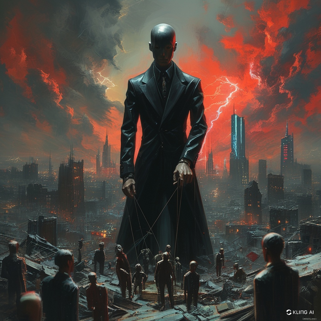Industrial w/ heavy synthwave beats, sharp guitar riffs, distorted bass, dynamic builds, epic guitar solos, scornful female vocals, hypnotic spoken word, ‑male vocals