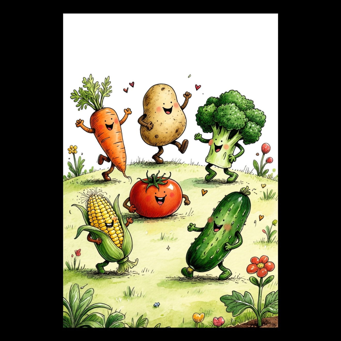 A peppy, happy, magical children’s song, Bright, bouncy, playful, full of wonder, The call‑and‑response should sound like a leader asking questions and kids shouting back answers, Keep the tone upbeat, whimsical, and easy for kids to sing along with, Different voices for the veggies