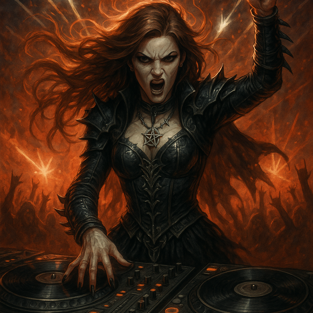 upbeat progressive witch house, ambient trance, industrial, anime rock, chiptune, metal guitar, horror synth