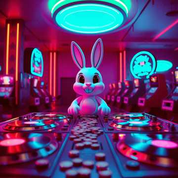 Cyberpunk Electro Swing, Future Funk, lo-fi, Casino Ambiance (Slot Machine SFX, Coin Drops), Playful Bunny Girl Kawaii Vocals, Heavy Turntable Scratches, Glitch FX, Turntable scratches, Chirp Scratch, SWAG