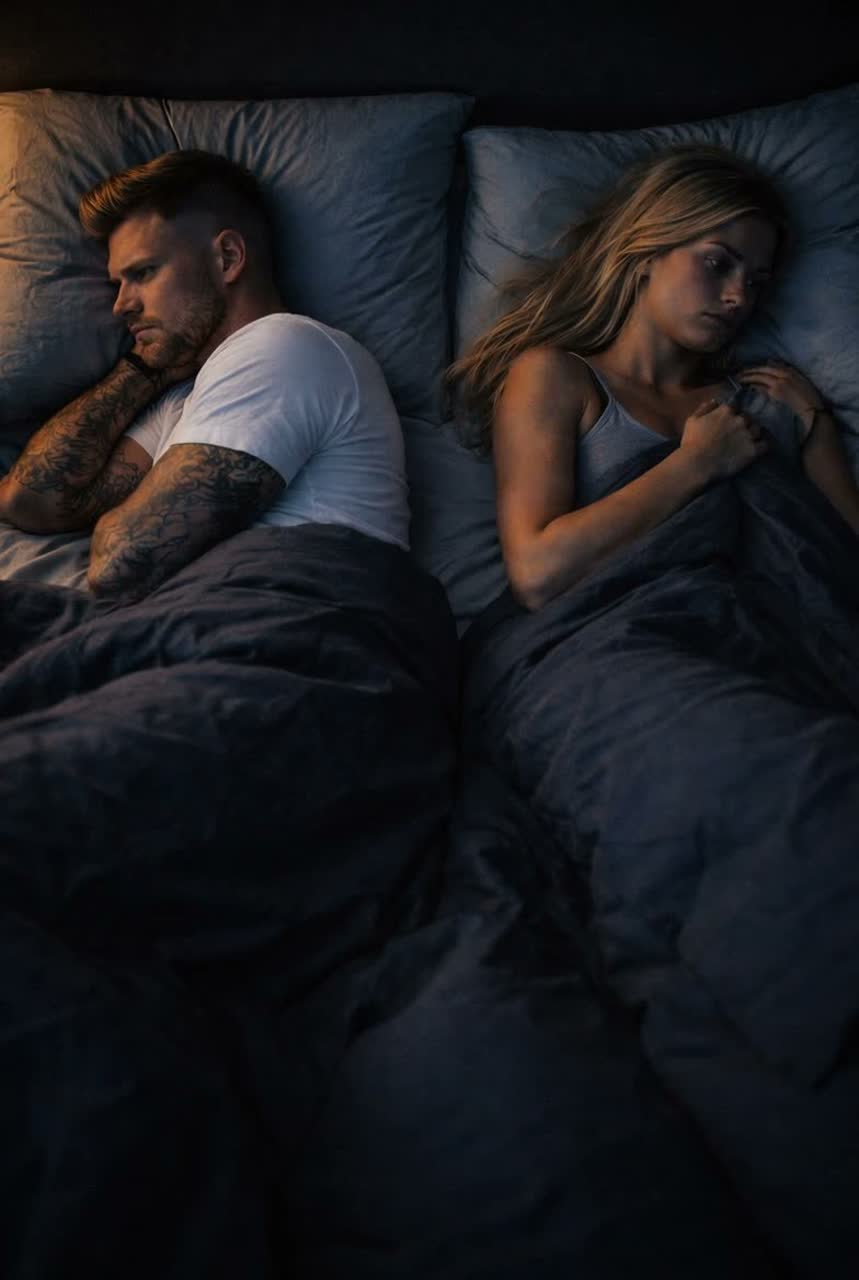 A minimal dark future-beat duet at 62 BPM, anchored by heartbeat-style kick and filtered sub bass, Male chest-voice lines echo through sparse, dry piano chords, each phrase met by soft, whispered female responses, Dissonant pads subtly morph in the background, The chorus widens with airy layered harmonies and unresolved chords, but retains a delicate restraint, cinematic and tense, hanging in remorseful suspense