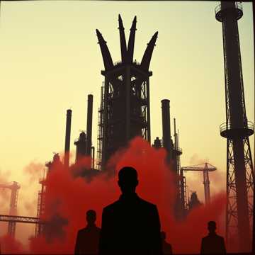 Blackened industrial metal, thrashy guitar, rough heavy bass, experimental noise, gravelly vocals