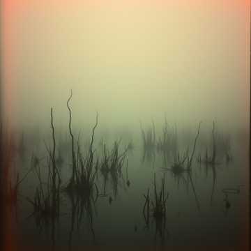 eerie, distant percussion, storytelling; haunting synth pads, atmospheric, male vocals, and whispered male vocals