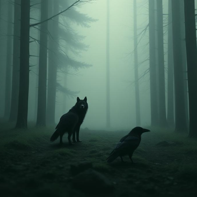 heavy metal, J-pop, Jungle, ravens, powerful raspy male voice, with acid houseโs squelchy, [Guitar 1:(Marshall Plexi; max tone;upfront; Gibson Flying-V;upfront)]:[center, solo]