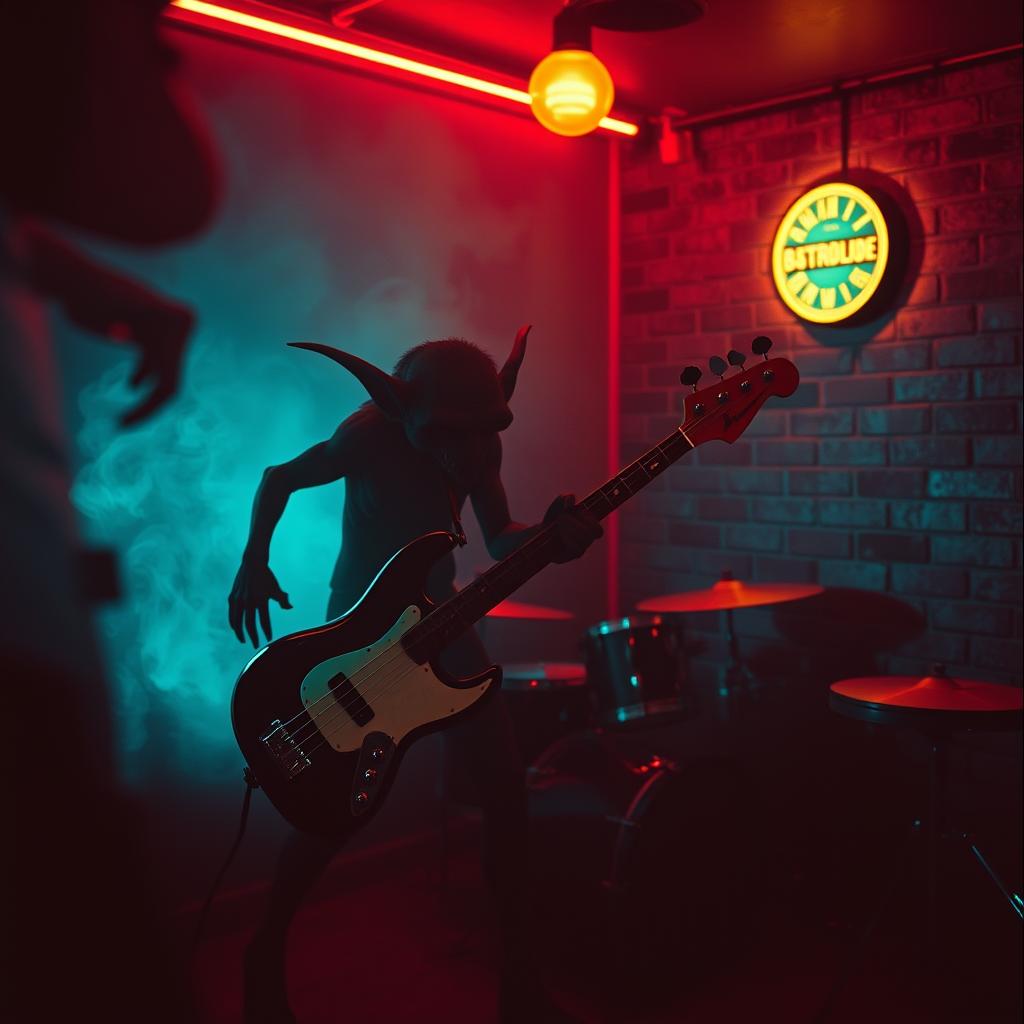 A delirious psychobilly infernoâupright bass slaps in crooked 5/4, each hit a ricochet of grit and groove, Hollowbody guitars snarl through chromatic bends, tremolo-picking twisted blues scales that dance like engine misfires, Drums shuffle with jazz precision and punk violenceârimshots tight, ride sizzling, fills chaotic but purposeful, Psychotic vocal outbursts light up the mix like fireworks, The harmonic language bends from Lydian to diminished swagger, tension blooming before collapsing into slap-echo reverb, Occasional background shouts and wild room noise bleed in, adding live danger without stealing focus, Everything feels played on the edgeâno grid, just adrenaline and swing physics, Tape warmth and amp grit fuse theory with chaos, a whiskey-fueled equation of rhythm and rebellion, The result: a twisted barroom sermon told entirely through sound and smoke, âdjent_precision, âedm_gloss, âpop_auto, âtrap_repetitiveness, âlo_fi_muffle